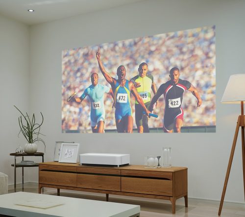 設置スペースが限られている方や、狭い部屋で大画面を楽しみたい方には、超単焦点プロジェクターがおすすめです。壁からわずかな距離を確保するだけで大画面を投影できるのが魅力です。