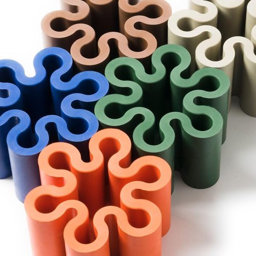水はねの形を模した遊び心あふれる見た目の傘立て。雨の日の水たまりにできる水はねをイメージしており、玄関を明るく彩ります。合成ゴム製で、重さは約1.2kg。安定感があり、濡れた傘も安心して立てかけられます。