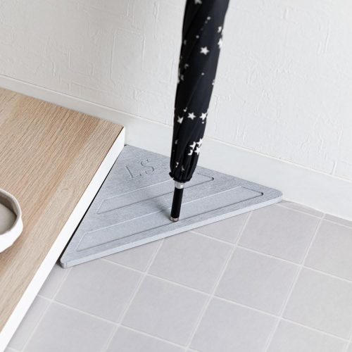 溶岩石と植物繊維を組み合わせた素材が雨粒を吸収するのが特徴。濡れた傘から滴る水分を素早く吸収し、時間の経過とともに自然乾燥するためお手入れは簡単です。160gと軽量設計で、不要なときは靴箱にも収納できます。