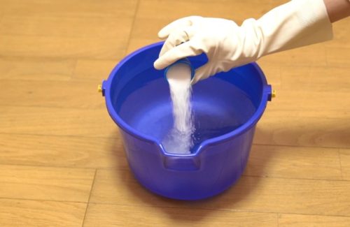 粉末タイプの洗剤は水に溶けにくいことがあるため、ぬるま湯でよく溶かしてから使うのがポイントです。また、汚れがひどい部分に直接振りかける方法もあります。