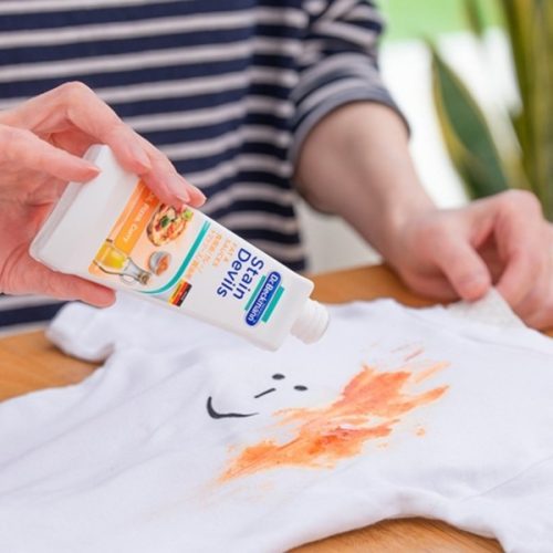 部分洗い用の液体洗剤ですが、汚れの範囲が広かったり、汚れた衣類が多かったりする場合には、通常の洗濯用洗剤として洗濯機でも使えます。落としにくい、ミートソースの汚れも落とせると謳っているのがポイントです。