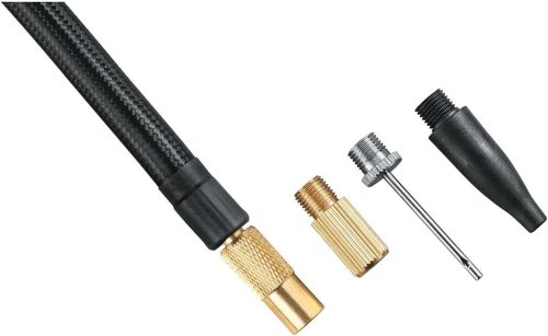 5種類のアダプタが付属しており、自動車のタイヤだけでなくビニールプールや浮き輪など幅広いアイテムに対応。また、暗い場所でも視認性を確保できるLEDライトも搭載しています。
