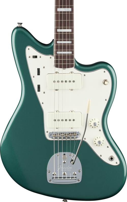 アルダー材のボディに「モダンC」シェイプのメイプルネックとローズウッド指板を組み合わせたジャズマスターです。指板は9.5インチラジアス、22本のジャンボフレットを搭載し、演奏性と扱いやすさを両立。カリフォルニア州のコロナ工場で製造されているおすすめのジャズマスターです。