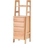 幅34cmのスリムサイズで、クローゼットや洗面所などの限られたスペースに設置するのにも便利。段数は、3段と5段をラインナップしています。引き出しの裏にはストッパーが付いており、安定性も良好です。