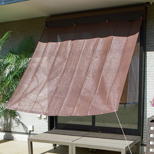 取り付け用ハトメ穴とのれん棒穴付きで、さまざまな場所に設置できるのもメリット。ハトメの数も多く複数のロープでしっかり固定できます。防水性・耐候性・耐久性が高く、年間を通して使用可能。外からの視線もしっかりシャットアウトできるサンシェードです。