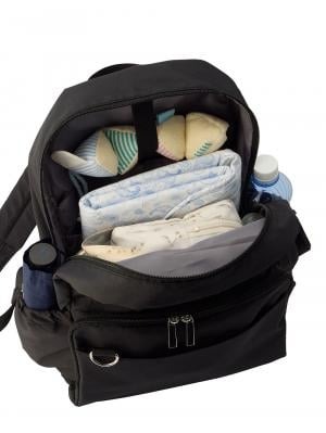 コンパクトながら18Lの容量を備えており、荷物をたっぷり収納できます。メイン収納のほか、トップとフロントにファスナー付きポケットを搭載。両サイドにはボトルポケットがあり、赤ちゃん用と大人用の飲み物を収納できます。