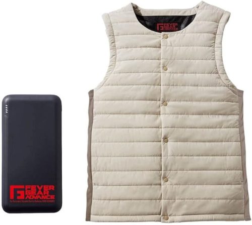 市販のモバイルバッテリーに対応したモデルのため、簡単に電源を確保できるのが魅力。また、側面にリブを設けることで高いフィット感を実現しています。重ね着しやすいインナータイプの製品で、アウトドアシーンから日常使いまで幅広く活躍するおすすめの防寒アイテムです。