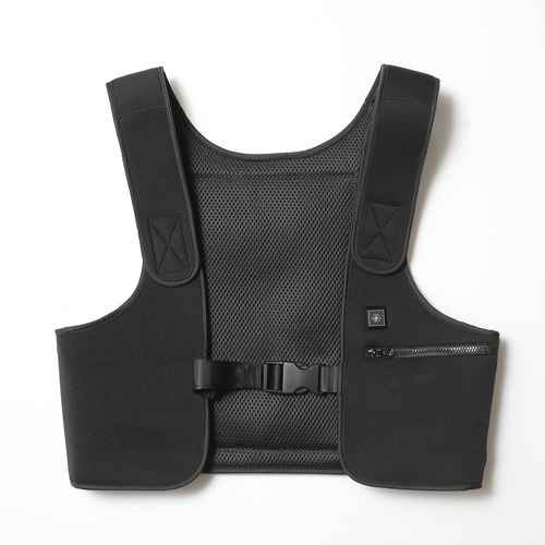 インナーとして着用した際に着膨れしにくい薄型タイプの電熱ベスト。アウターと組み合わせても体が動かしやすいよう配慮されているほか、肩のストラップと胸元のベルトからサイズの調節が行えるのも便利です。