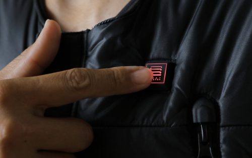 胸部分に配置されたスイッチで、簡単に温度調節が行えるのも便利。4段階から好みに合わせて設定変更が可能で、ランプの色で設定温度を判別できます。手洗いに対応した製品のため、電熱ベストの清潔性を重視する方にもおすすめです。
