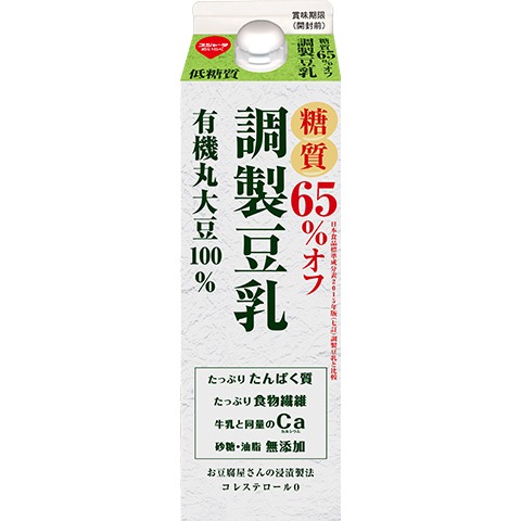 一般的な調製豆乳と比べて糖質65%オフを実現した商品です。砂糖・油脂不使用ながら、食物繊維を加えることでコクのある味わいに仕上げています。