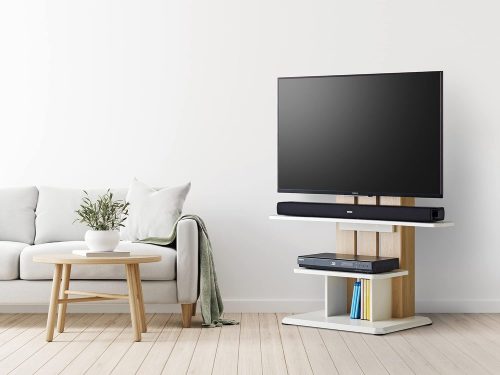 棚付きの製品を選ぶ際は、棚のサイズや耐荷重を確認しておくと安心。サウンドバーのような横長の機器を置くなら幅の広い棚、複数の機器を置くなら棚板が2枚以上あるモノを選ぶなど、用途にあわせて検討してみてください。