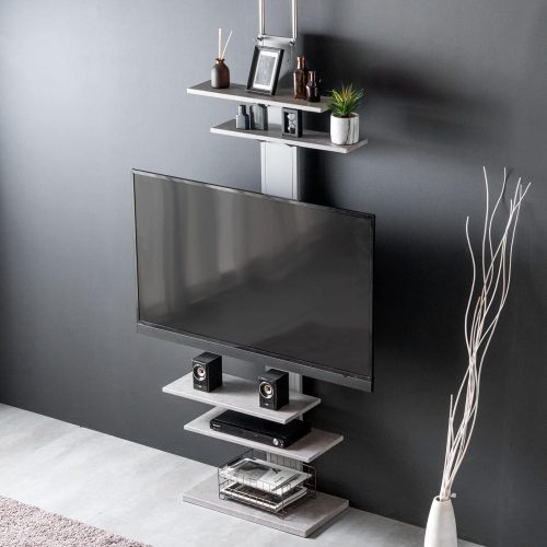 グレーの木目をあしらったおしゃれなデザインが魅力の自立式テレビスタンドです。表面はメラミン仕上げで強度が高いため、傷が付きにくいのがメリット。インテリアにしっくり馴染みながら、きれいな状態で長く愛用できます。