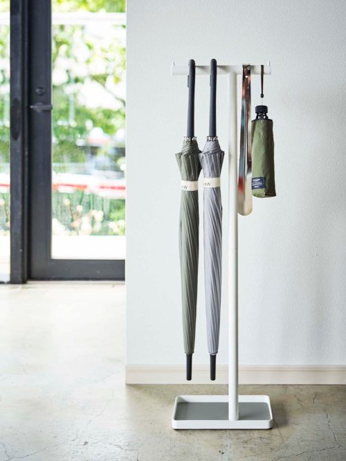 長傘と折りたたみ傘の両方を掛けられるモノが多く、まとめて管理したい方におすすめ。傘を広げて干せる製品なら水はけと通気性がよくなります。上部に天板を備えたモノは、鍵などの小物を置くスペースとして使えて便利です。