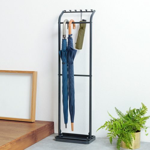 トレイは位置を調節でき、折りたたみ傘も収納可能。長傘と折りたたみ傘を分けて整理できるのが便利なポイントです。シンプルなデザインはどのような雰囲気の玄関にも馴染み、生活感を抑えたすっきりとした印象を与えます。玄関をきれいに片付けたい方におすすめです。