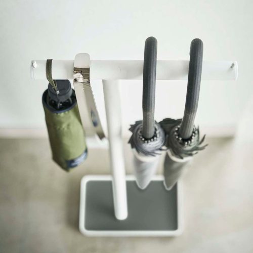 前後に傘を掛けて最大8本の収納が可能。折りたたみ傘や靴べらも一緒に掛けられるため、細かい荷物をひとつにまとめて整理できます。傘同士が絡まりにくいのもメリットです。