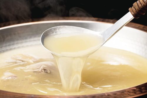鶏のがらをじっくり煮込んだ濃厚なうまみの白湯スープに、鶏油を加えたスープの素です。鶏のうまみと風味を豊かに仕上げているのが魅力。鶏白湯ラーメンや本格的な博多水炊きを手軽に作れます。