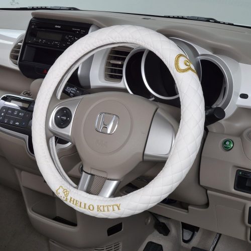 かわいらしさと実用性を兼ね備えたハンドルカバー。ハローキティのキルティングデザインにホワイト&ゴールドのカラーリングで、車内をエレガントに演出します。PU生地を使用しており、なめらかな触り心地と汚れにくさが特徴です。