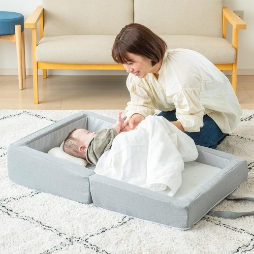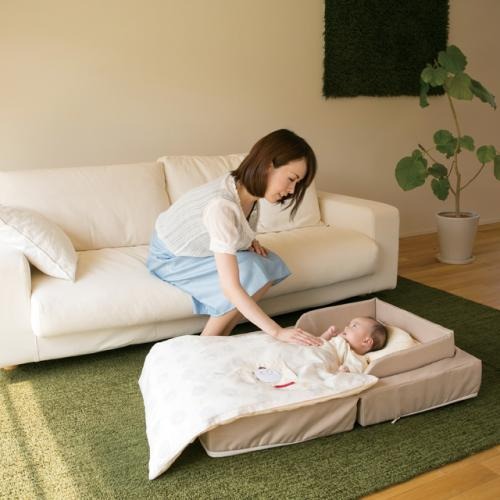 大人用ベッドでの添い寝やリビングでのお昼寝だけでなく、お風呂上がりの待機場所やおむつ替えマットとしても活躍。さまざまなシーンで、赤ちゃんにとって安心感のある空間を確保できます。