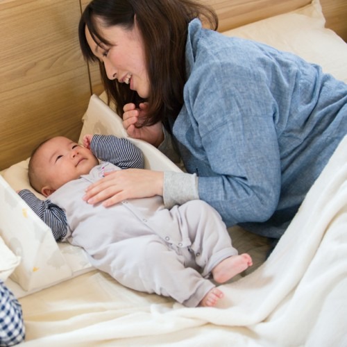 下半分にフレームがないタイプのベッドインベッドなら、赤ちゃんを抱き上げやすく、夜間授乳の際に便利です。添い乳をする場合は、赤ちゃんの寝る位置を下にずらすと楽な姿勢で行えます。