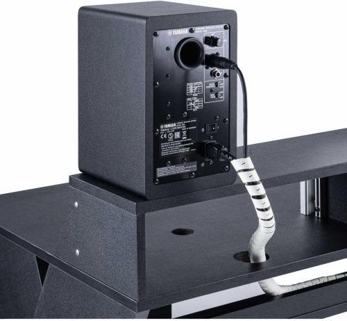 また、天板の下にキーボードを収納できるスライドテーブルを備えたモノもおすすめ。MIDIキーボードを収納しておけば、普段は邪魔にならず、引き出すだけで素早く創作を始められます。