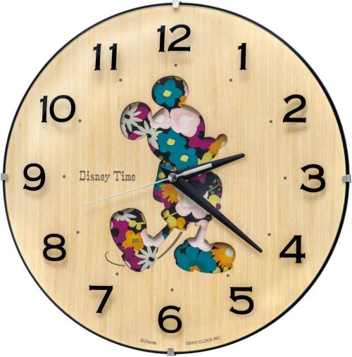 サイズは301×301×47mm、重量は890g。秒針は、刻むように1秒ずつ動くステップセコンドを搭載しています。単3マンガン電池1本で約1年間駆動するため、交換の手間を減らせます。ディズニーキャラクターが好きな方や、子供部屋のインテリアにおすすめのモデルです。