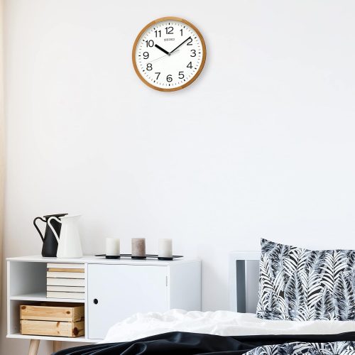 文字盤周囲の余白や指標と針のバランスにこだわり、視認性を高めた設計が特徴。小ぶりなフォントながら時刻を読み取りやすく、リビングや寝室など幅広い空間で使えます。サイズは直径288×奥行50mm、重量は840g。デザイン性と実用性を両立させたい方におすすめのおしゃれな壁掛け時計です。