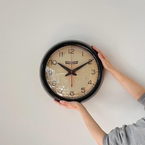 直径は大きめのサイズ感で見やすく、店舗やオフィスにも対応。単3電池1本で動作します。また、壁掛け用ネジも付属。レトロな空間演出にこだわりたい方におすすめの壁掛け時計です。