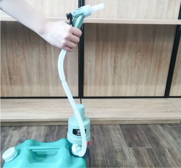 手や床を汚さずに給油できる灯油ポンプ。ポンプで空気を注入して使用する電池不要のモデルです。ポリタンクに取り付けたまま保管できるので、給油のたびに付け外しする手間がかかりません。