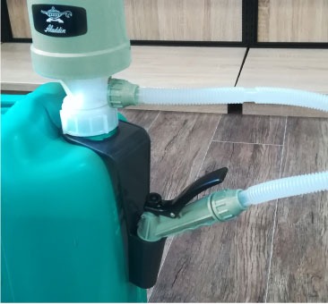 さまざまなタンク口に取り付けできるよう、3種のアダプターが付属。また、柔軟に伸びたり曲がったりする収縮タイプのホースを採用しており、深型から浅型までさまざまなサイズのタンクに対応できます。