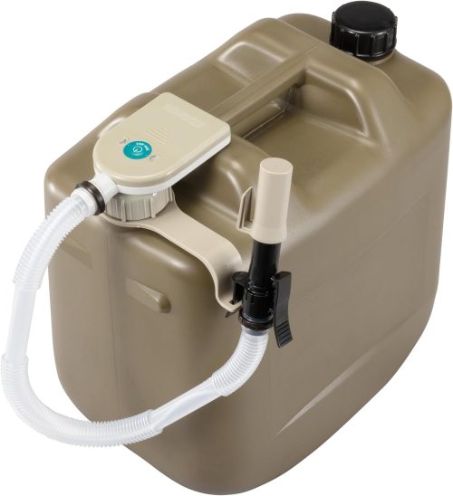 電池を使わず、空気の圧力で給油できる手動タイプの灯油ポンプ。キャップ部分を数回ポンピングしてタンク内を加圧する仕組みで、電池交換の手間がかかりません。