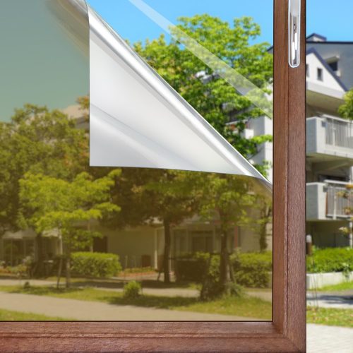 プライバシーを守る窓用フィルム。マジックミラー効果が日中ののぞき見を防ぎ、室内からはクリアに景色を楽しめます。開放感を損なわずに目隠しできるのが魅力です。