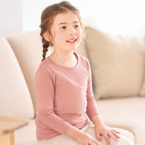 ベルメゾン 綿混あったかインナー・クルーネック九分袖キッズ