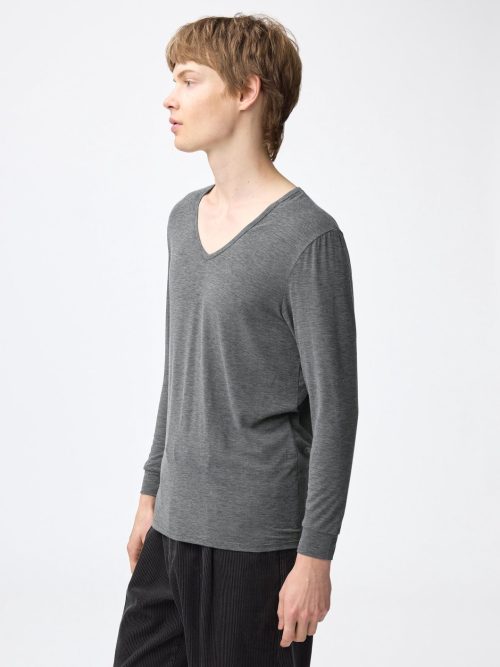 Vネックで、シャツのボタンを開けて着用してもインナーが見えにくい仕様。ホワイト・ダークグレー・ブラックの3色展開で、コーデに合わせて選べます。コストパフォーマンスに優れたあったかインナーを探している方におすすめです。