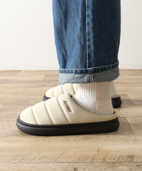 ダウン素材のフォルムが目を引く、クロッグタイプのサンダル。アッパーには撥水加工を施し、インナーには裏起毛やボアを採用しています。中綿入りのクッションも備え、足元をあたたかく包み込むような履き心地が魅力です。