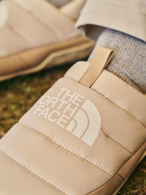 あたたかいダウンを封入した冬仕様のミュール。アッパーには、撥水加工を施したリサイクルポリエステルを採用しています。550フィルパワーのダウンを封入し、保温性にも優れているのが魅力です。