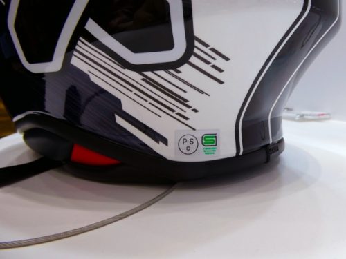 滑らかな曲面を連続させた帽体構造で衝撃をかわす性能が向上。従来よりもシールドバイザー取り付け部を下部に配置し、シェルで受け止める面積を拡大しています。
