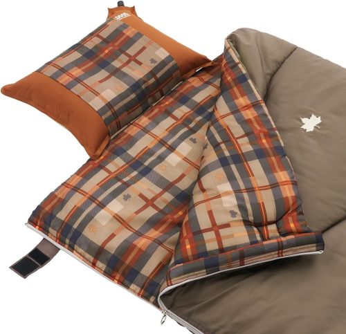 収納袋付きで持ち運びやすく、車中泊や防災グッズとして役立つ機能的な寝袋。ゆったりとしているので寝心地もよく、布団のような感覚で休めます。さらに、ダブルファスナー仕様で、温度調節をしやすいのもメリットです。