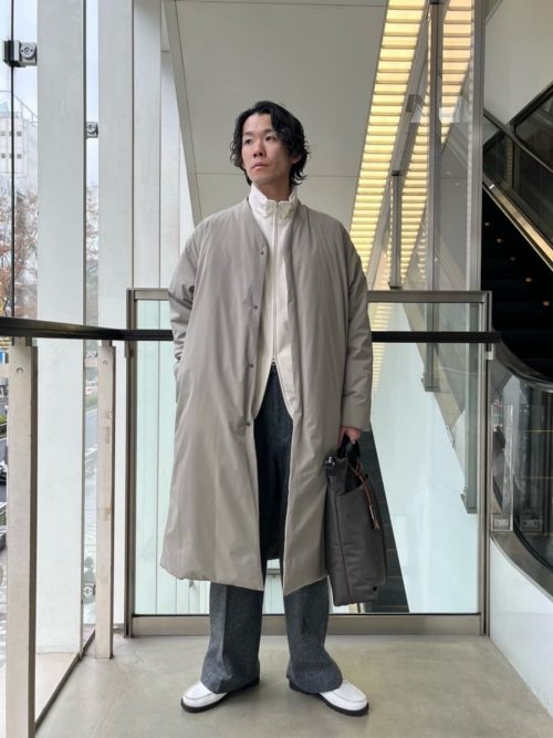 ON/OFF兼用で着まわせる、ミニマルな印象のダウンステンカラーコートです。ワッシャー加工を施した雰囲気のあるナイロン素材を採用。軽量で反発力の高いダウンを使用しているのが特徴です。
