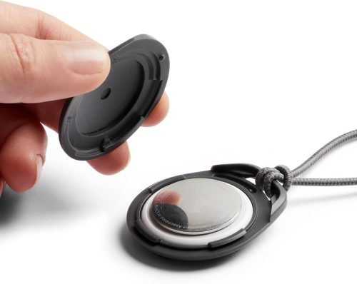 完全密閉型仕様のAirTagケース。内部にAirTagを固定して、傷や汚れを防げるのがメリットです。片側には多孔質ポリマーシェルを採用。外部にしっかり通知音を届けられるよう工夫されています。