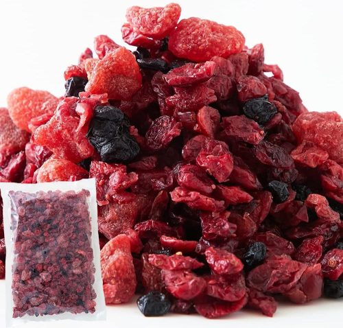 いちご・クランベリー・ブルーベリーの3種類を凝縮したドライフルーツです。すべてのベリーの甘酸っぱさがバランスよくミックスされており、食べ応え十分の500g入り。それぞれ異なる味わいが一度に楽しめるため、毎日のおやつにぴったりです。