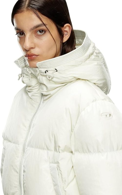 やや細身のシルエットに、大きめのフードが特徴的なレディースダウンジャケット・コートです。フロントのスナップボタンの下には、ダブルジッパーのクロージャーを採用。袖口はリブニット仕様で、風を通しにくく寒い時期でもあたたかく過ごせます。