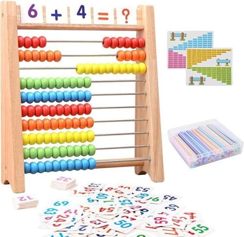 Flzoaveus 100玉そろばん+数字カード