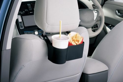 後部座席の快適性を向上させる収納ポケット。エラストマー素材を採用しており、ソフトな質感で、ドリンクやポテトなどを安全に収納できるのが特徴です。ヘッドレストに簡単に取り付けられます。