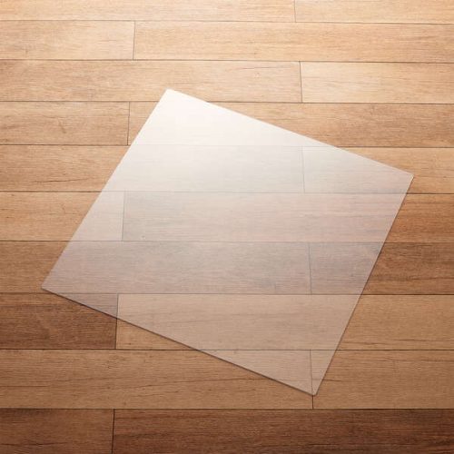 ハサミでカットして調整できる床保護マット。汚れやシミ、熱に強いPVC素材を採用しています。透明なクリア仕様で、床の質感を損ないにくいのがポイントです。