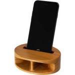 ウォールナットとチークの2種類を展開しており、木のぬくもりを感じられる重厚なデザインが魅力です。挿入口は幅80×厚み11mm以内のスマホに対応し、カバーを付けたままでも使用できるのが便利なポイント。パーティーやアウトドアなどさまざまな場面で活躍する、おすすめのアイテムです。