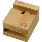 素材は天然のラバーウッドを使用。ナチュラルな色合いと木目をいかしたおしゃれなデザインを採用しています。また、下部にはケーブルを通す穴がついており、充電しながら使用できるのもメリット。iPhoneやAndroidなど多くのスマホに対応しています。ちょっとしたプレゼントや景品としてもおすすめです。