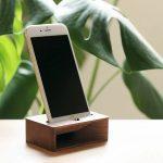 電源不要で音を増幅できる木製スピーカー。音響工学的な構造を内部に採用し、スマートフォンを差し込むだけで音が木を通り反響・増幅する仕組みです。木製ならではのあたたかみのある音色を楽しめます。