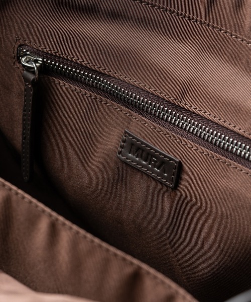 マットな質感の本革を使用したシンプルなデザイン。A4サイズ収納可能でオン・オフ問わず使いやすく、上部はファスナーで閉じられる仕様です。裏地にはやや光沢のあるツイル生地を採用し、上品な雰囲気に仕上げています。