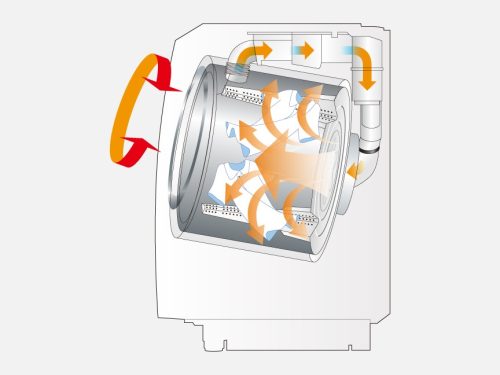 ヒーター乾燥は、本体に内蔵されたヒーターで空気をあたため、約80℃程度の高温の風を衣類にあてて乾かす方式です。高温で一気に乾燥させるため、短時間で洗濯モノを乾かせるのが特徴。急いでいるときでも素早く対応できて便利です。