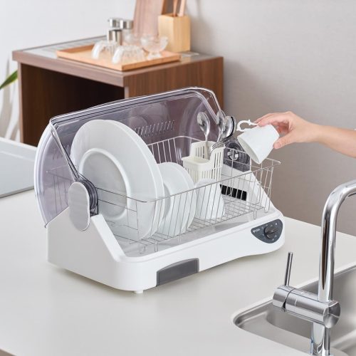 タイマー機能付きで、乾燥時間を調整できるのが便利。抗菌設計で衛生的に使用でき、ケーブル長は約120cmで設置場所を選びません。手洗いした食器を素早く乾かしたい方におすすめのモデルです。